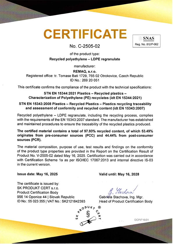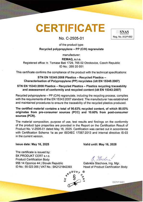 PRODUKCE PLASTOVÝCH RECYKLÁTŮ PRO NEJNÁROČNĚJŠÍ APLIKACE